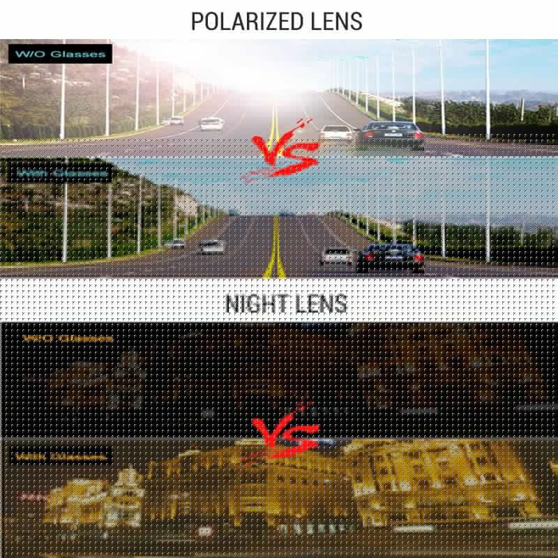 Yellow night vision lens / Tawny lens / Dark-grey polarized lens / Clear lens