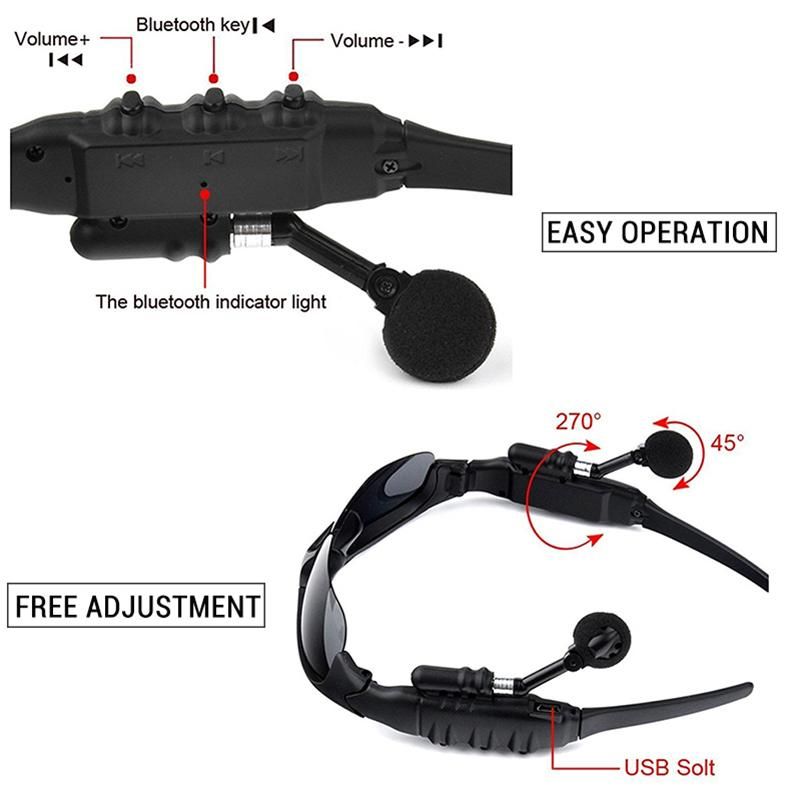 4.1 Bluetooth chip / Perfect stereo music / Intelligent voice dialing / Bluetooth 2 devices / Level 9 noise deduction / 10 Metres range / Strong and lasting / Polarized lens / High compatibility / 5 lens for change