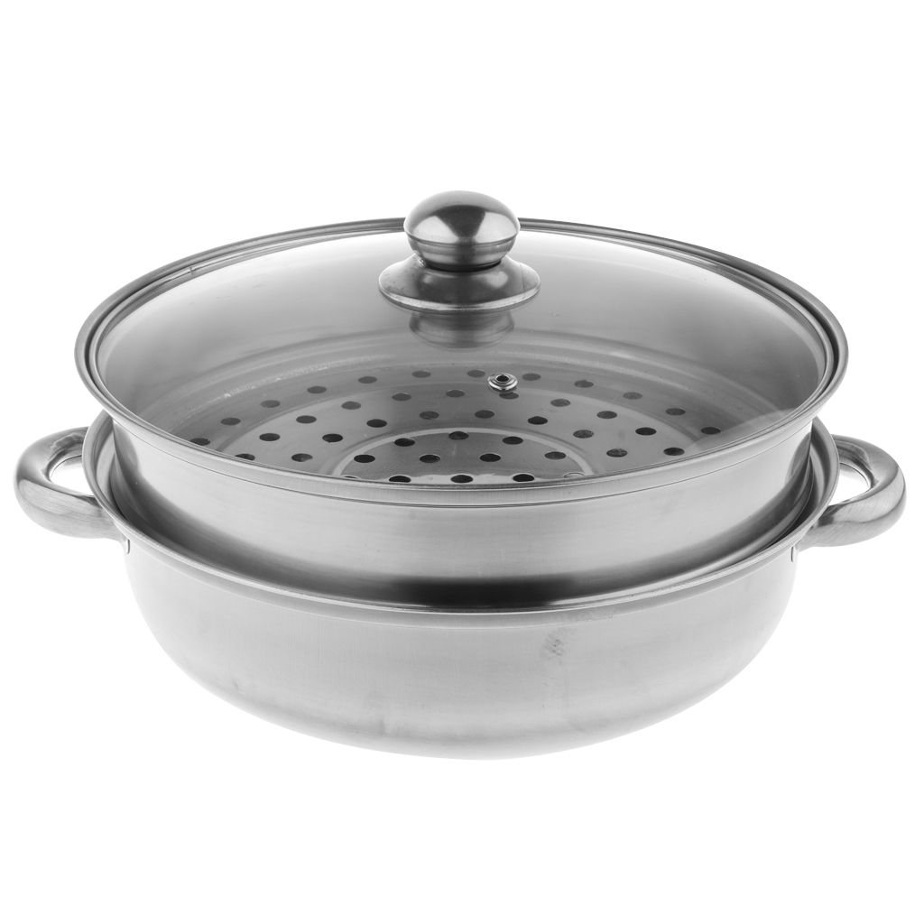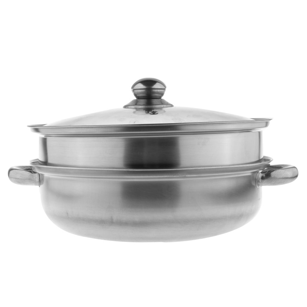 Stainless Steel Steam Cooker Steamer Pan Cook Pot Set Glass Lid 2 Tier A