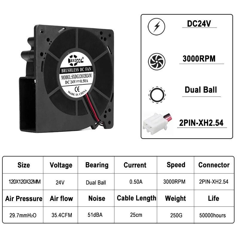 Buy new SXDOOL 12cm 120mm 120*120*32mm Turbo Centrifugal Dual Ball 24V 0.50A 3000RPM PC Case Ball Blower Fan in Nigeria