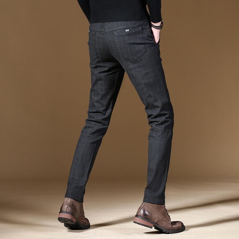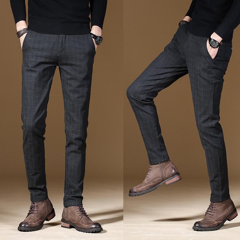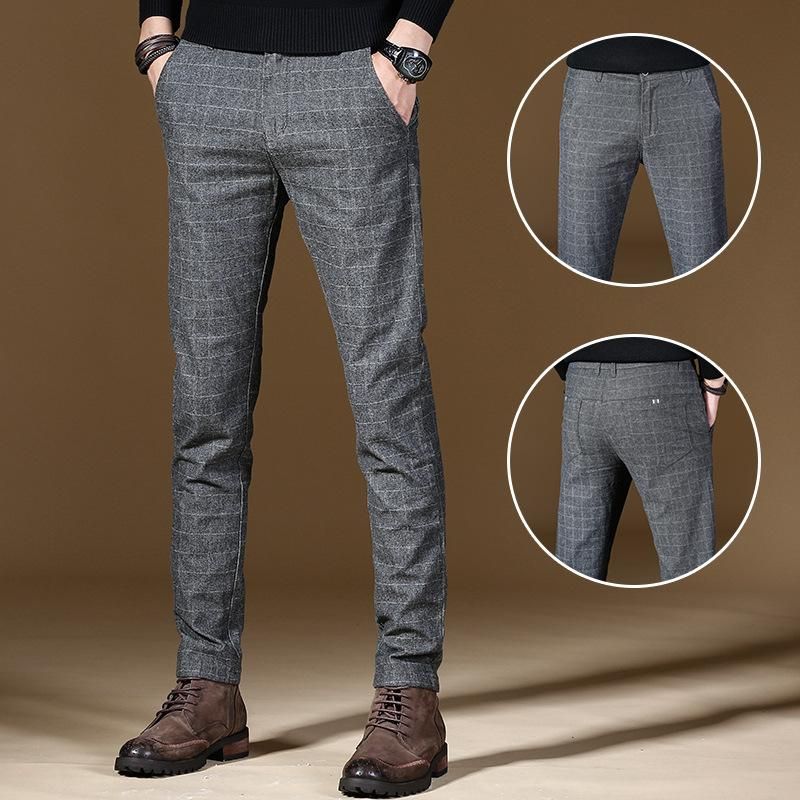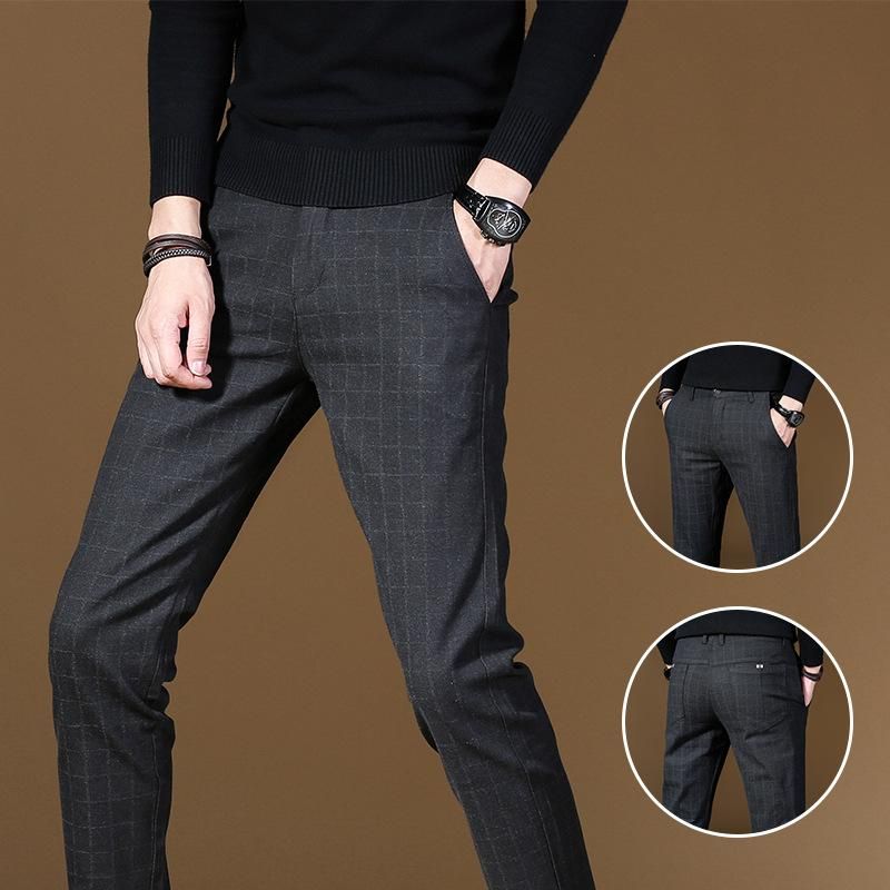 2021 nueva tendencia cuadros inteligente Casual de negocios de Pantalones largos ropa de oficina para hombre recto pantalones estrechos de hombre Fit pantalones de otono