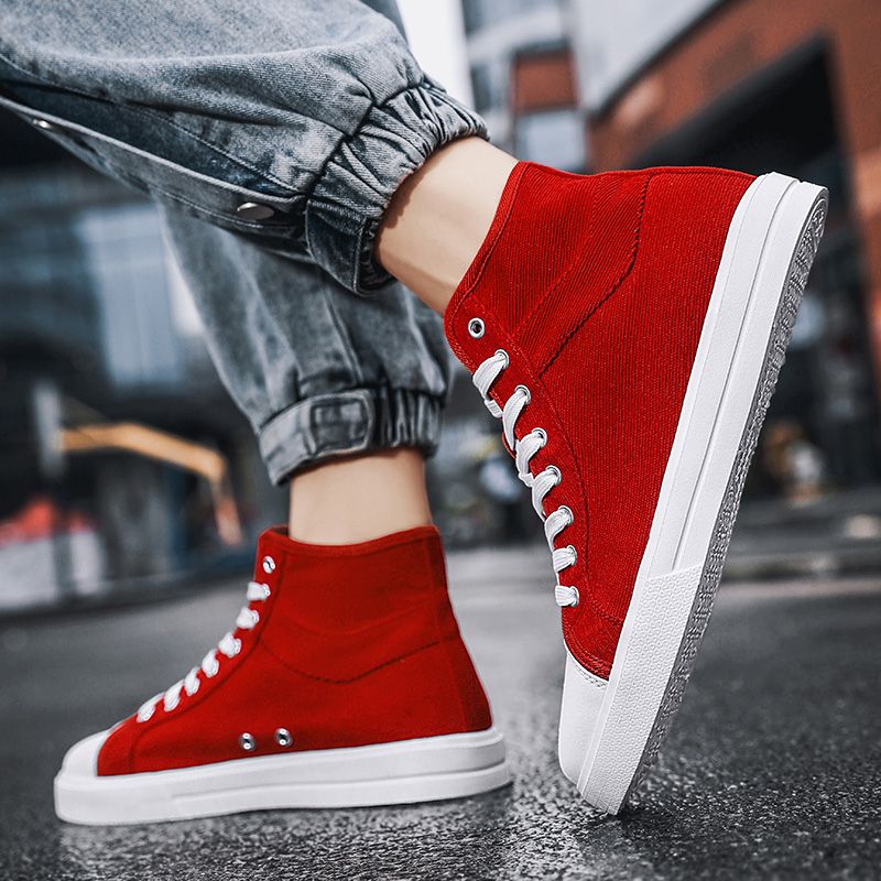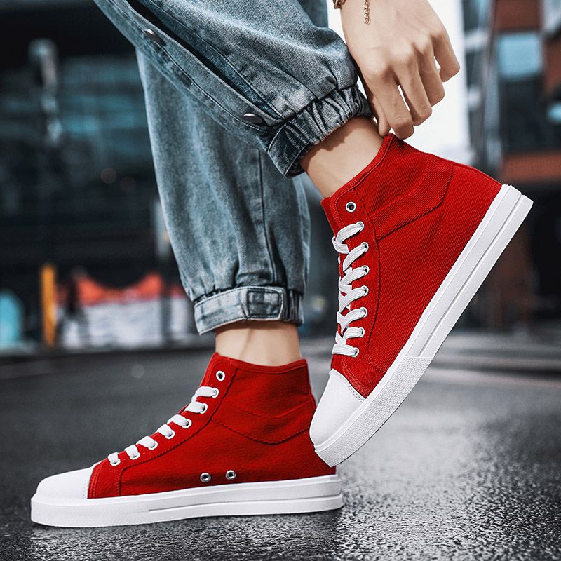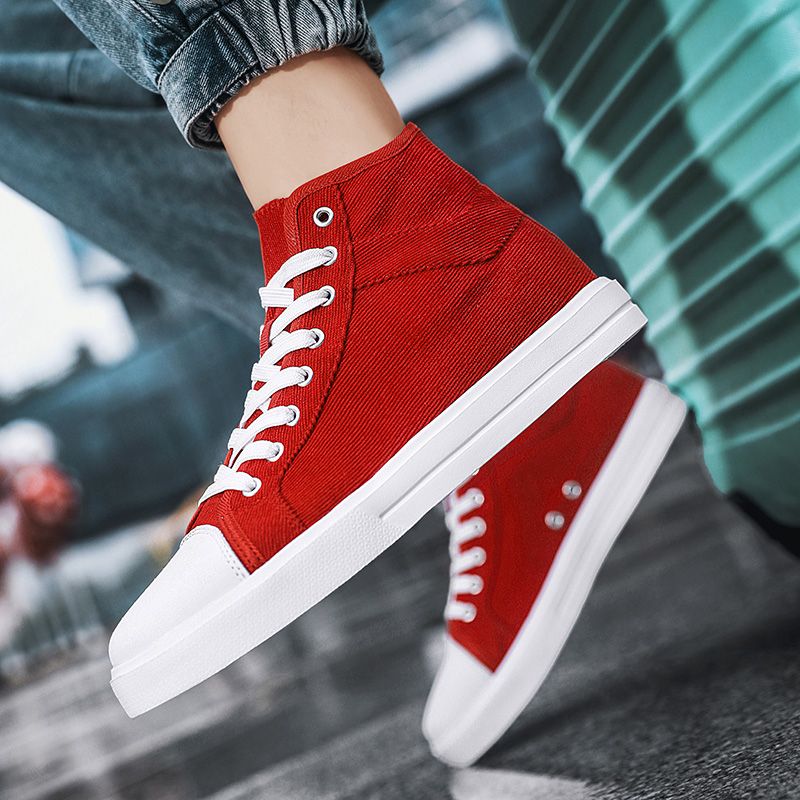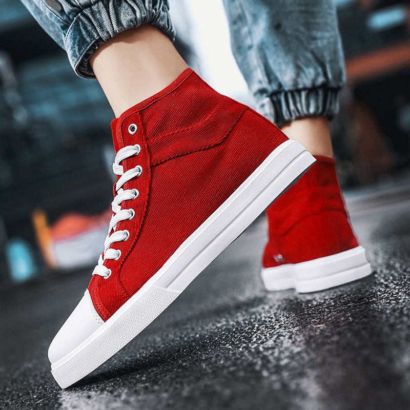 Buy New Trendy Canvas Sneakers Men High-top Shoes EUR Size 36-46 Unisex Fashion Sneakers Comfort Outdoor Casual Skateboard Sports Shoes Students Classic All-match Breathable Canvas Walking Shoes Red in Nigeria