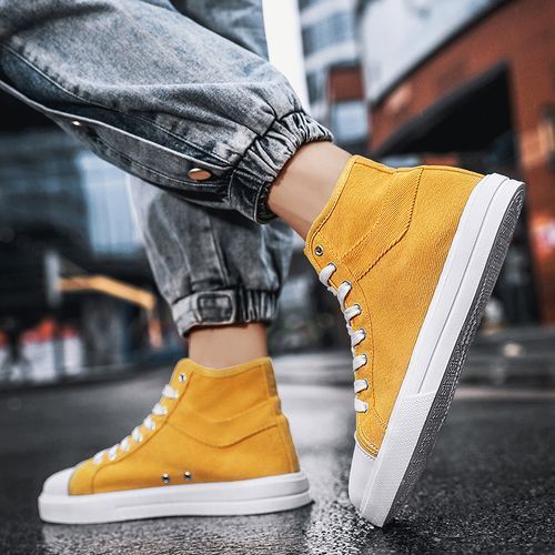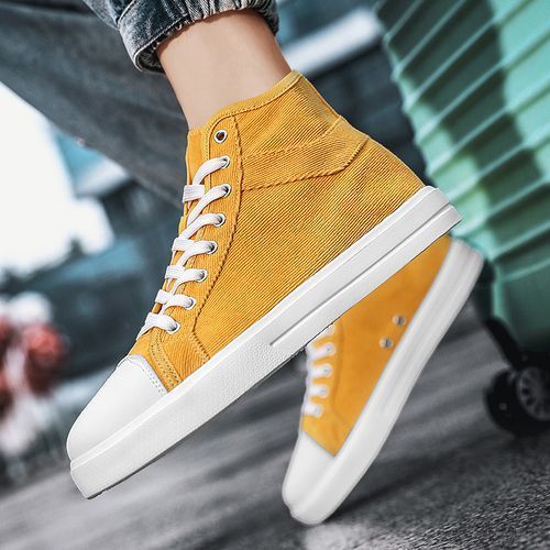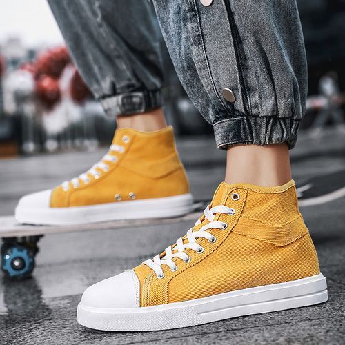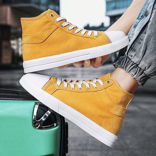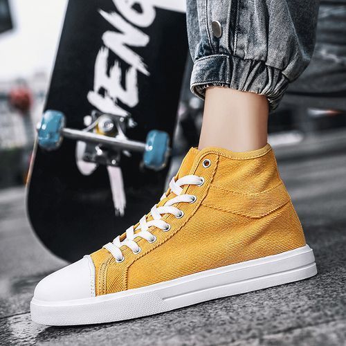 Buy New Trendy Canvas Sneakers Men High-top Shoes EUR Size 36-46 Unisex Fashion Sneakers Comfort Outdoor Casual Skateboard Sports Shoes Students Classic All-match Breathable Canvas Walking Shoes Yellow in Nigeria