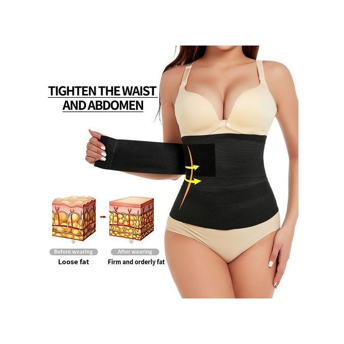 ADJUSTABLE WRAP : One size fits most. Our wrap allows you to snatch your waist according to your comfort level, can be worn under your dress and it's seamless and very comfortable.CARE : Hand wash only, air dry by hanging in cool place.VERY STRETCHY: Made with super stretch Fabric (35% latex 65% polyester). 4 meters long and 4.92 inches wide Tummy Wrap Helps to smooth out all our excess fat, and also prevent bulging.Waist Shapers: Help you shape faster and provide the best resultsMultiple adjustments:4 times better compression than a normal waist trainerNew long belt design: Freely adjust the elasticity to fit your body and wrap you better than everConveniently for exercise: Gives you support and allowing you to retain your range of motion.Back Support: Helps support lower back muscles so you can move more confidently and comfortablyInvisible: Invisible under our clothes without being noticeableRelieve back pain: Help relieve people suffering from back pain and low back painOccasion: Used in gyms, offices, daily life