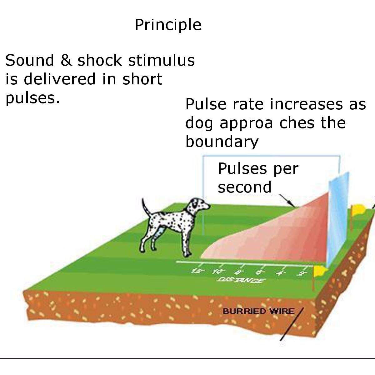 2. Pulsed Proportional Stimulus - The closer your pet gets to the boundary, the more intense