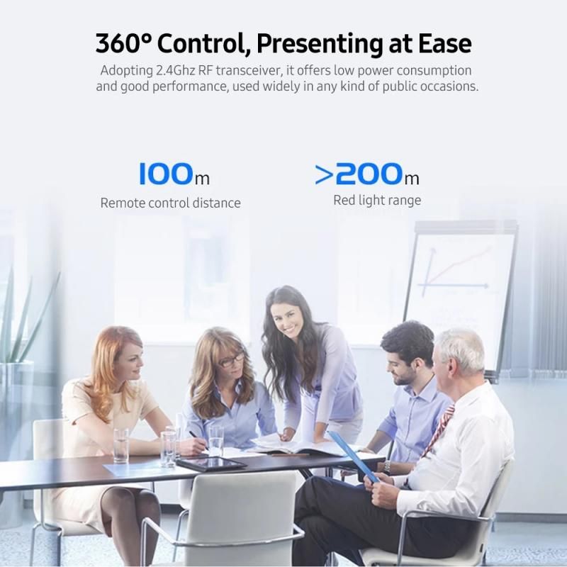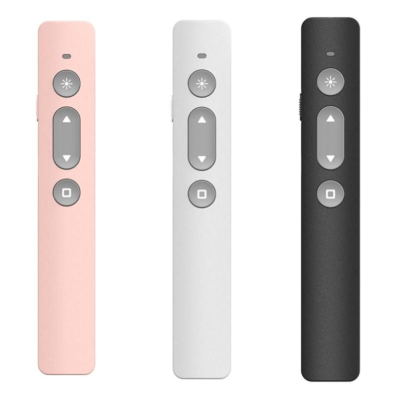 Description:Remote control distance: 100mRed light range: About 200mBattery: Lithium batteryBattery capacity: 200mAhRated voltage: 3.7VTransmitting technology: 2.4Ghz RFColor: Black, White, Pink ( Optional ) Item size: 130* 21* 12.5mmSpecifications:1.Low Battery Indicator.When the battery is too low, the indicator light will be blue and flicker for a while.2. Stable Transmitting. Adopting 2.4Ghz RF transceiver, it offers low power consumption and good performance, used widely in any kind of public occasions.3. Convenient & Quick Connection. USB receiver, plug and play. Be free of driver software.4. Charge it Anytime, Anywhere. Connected with USB cable, you can charge it with laptop, PC, power .5. Bright Red Light Pointer. A warm reminder for participants to catch each detail you speak.6. Wide Compatibility. Compatible with Win7/8/10, MAC/iOS, Android, Unix, Linux system and Office series page-turning format files.Package Included:1 * Multimedia remote control 1 * USB cable
