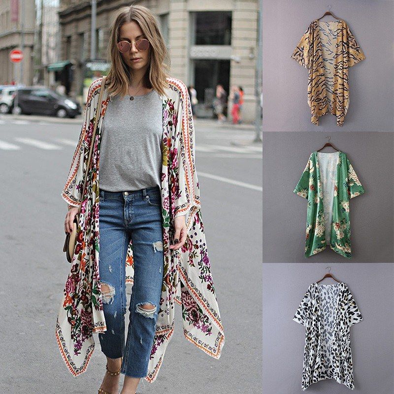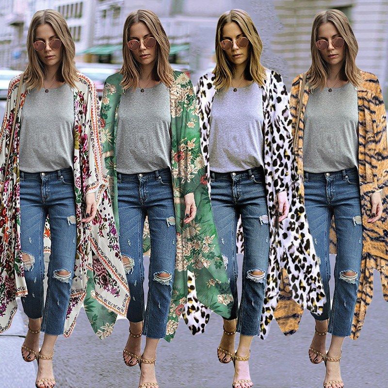 Crafted from lightweight chiffon with soft touch and featuring all-over fresh floral print, this cardigan makes a chic and stylish look. With open front, loose bat sleeves and irregular hemline, it\';s great to block sunlight in spring or on the beach as a cover up.