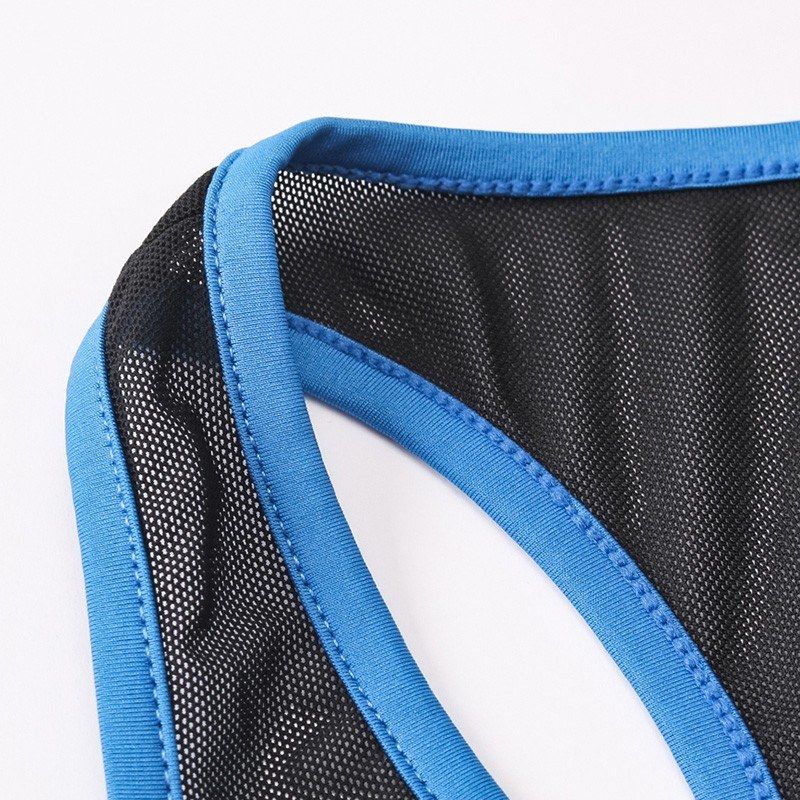 Semi-sheer mesh splice and color block design.