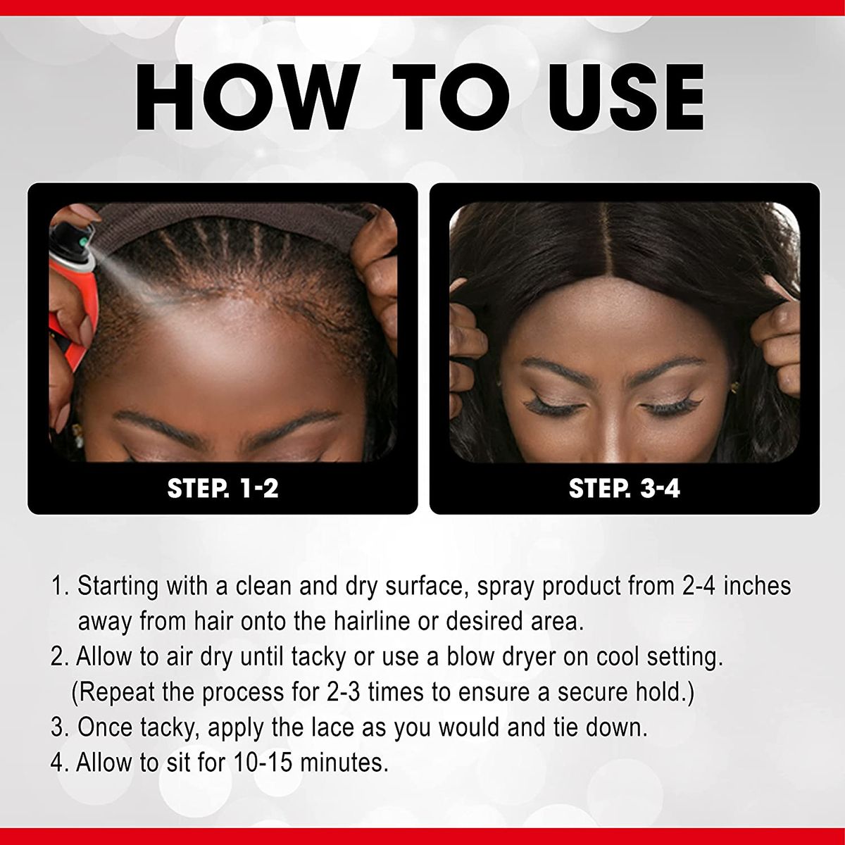 Adhesive Spray. Perfect for daily wig application or touching up an existing lace piece. Strong enough to provide an all-day hold, but gentle enough to be removed at any time.