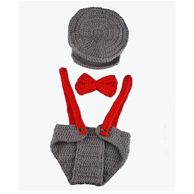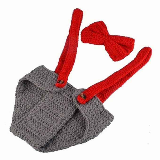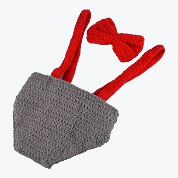 Handmade crochet knitted hat, bow tie and overall.