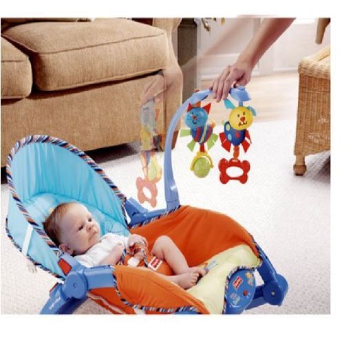 Give your baby comfort and safety, and give yourself some free time with the Newborn-to-Toddler Portable Rocker. It is a multi-featured grow-with-baby product designed for long-lasting use. The infant rocker easily converts to a stationary seat for feeding and sleeping. The soothing vibrations and gentle rocking motion will comfort your child. The baby portable rocker has a removable toy arm with two spinning objects whose bright, high-contrast colors will capture your infant's attention. A rotating ball helps develop hand-eye coordination, and the oval-shaped handle with teething textures helps babies explore various shapes and textures with his mouth and hands. The arm also swings out of the way for quiet time.
