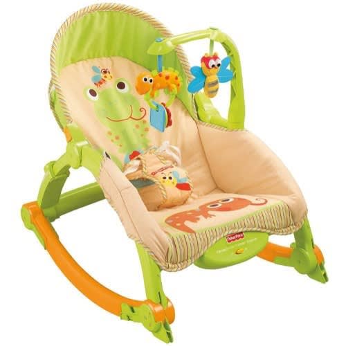This Fisher-Price Rainforest Bouncer features loads of play. The soft, removable toybar features spinning leaves with bat-at, Take-Along Monkeys. The Take-Along Monkeys have clacker beads and a roller-ball and can be removed for baby to play with or transferred to other platforms in the Rainforest Friends line. For soothing, the Fisher-Price Rainforest Bouncer includes calming vibrations. Also features a three-point fabric restraint, machine-washable pad and non-skid feet. Fisher-Price Rainforest Friends Bouncer: The Friends Rainforest Baby Bouncer is recommended for babies up to 11.3kg. Use only for a child who is able to hold head upright unassisted and who is not able to walk or climb out of product. Features calming vibrations to soothe baby. 3-point fabric restraint. The Baby Bouncer includes soft, removable toybar that features spinning leaves for baby to bat at Also includes .Take-Along Monkeys with clacker beads and roller-ball. Part of the Rainforest Friends collection. Removable and machine-washable seat pad. The Fisher-Price Baby Bouncer requires 1 D battery (not included). Assembly required
