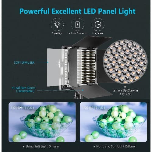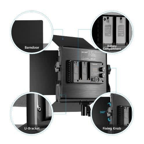 .A high-quality professional photography light panel with 600pcs light beads, bi-color temperature 3200-5600K, dimmable brightness, high CRI 95, integrated barndoor, rotatable cold shoe ballhead and 1/4 inch screw hole interface, perfect for outdoor photography, studio photography, product photography, live stream, video conference, makeup, etc. Come and buy now, don't miss this wonderful product!