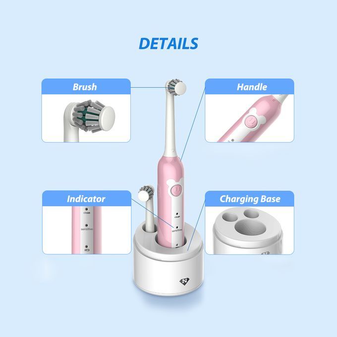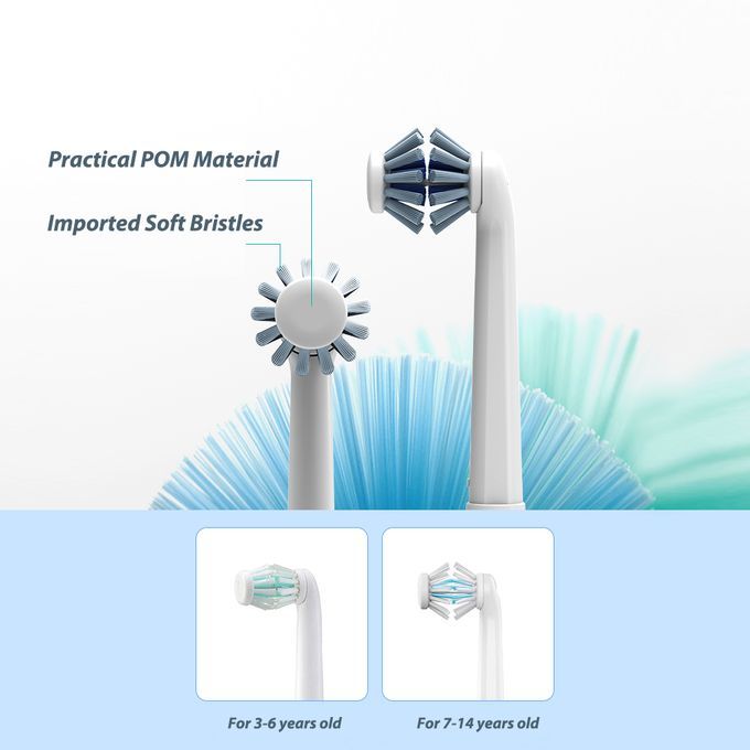 Features:FOR KIDS: This toothbrush is designed for kids 3-6 yrs/7-14 yrs, scientific structure 3D dual brushes fitting the teeth situation according the kids' age.