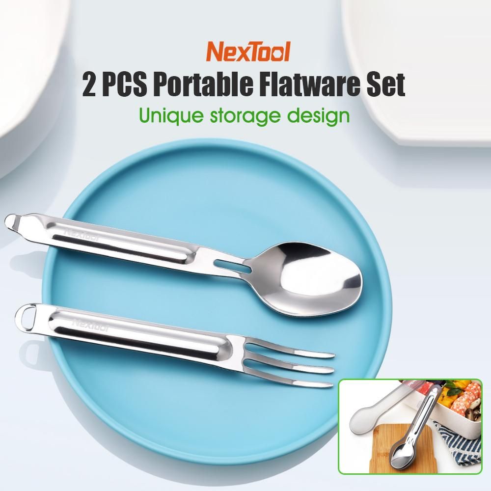 Buy NexTool 2 PCS Outdoor Flatware Set with Case Silverware Set Fork Spoon Travel Set Portable Mirror Polished Stainless Steel Cutlery Set for Travel Lunch Box and Camping in Nigeria