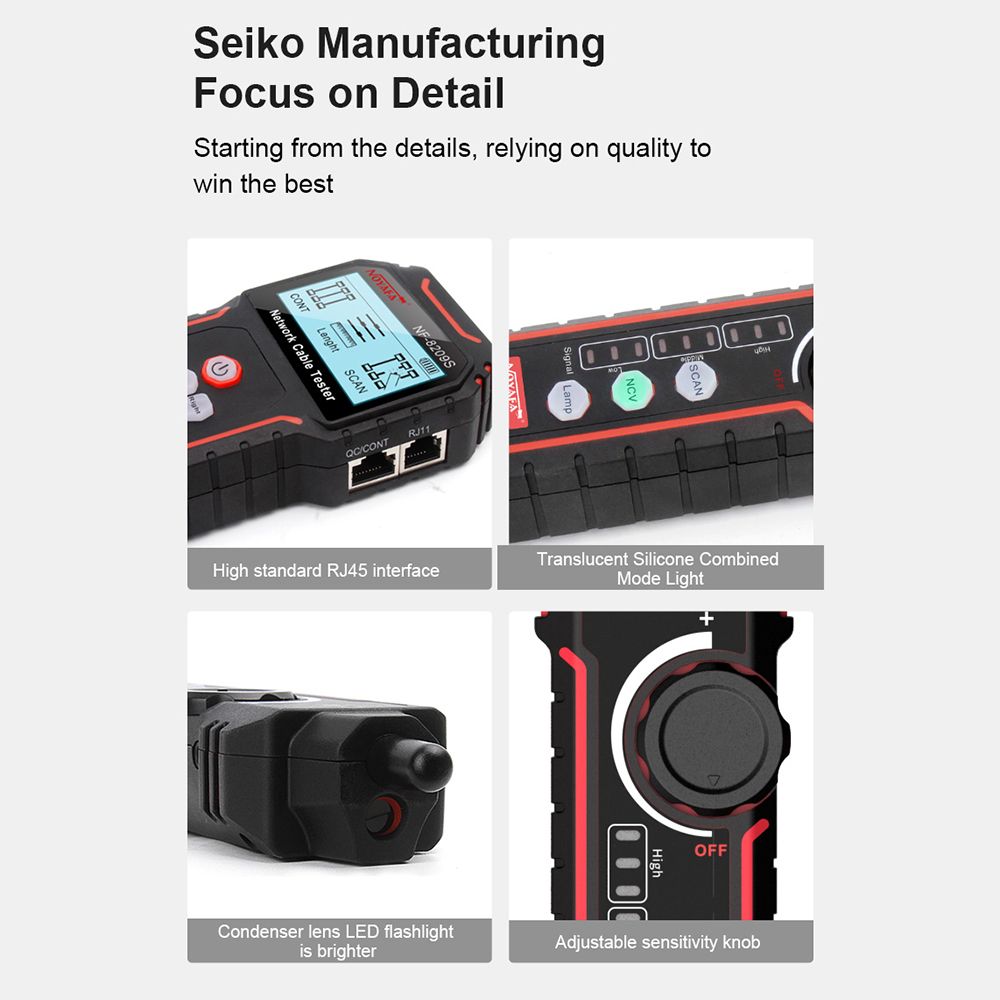 NF-8209S is a new generation to offer digital and analog signaling all in one network toner and probe. It has three modes for options to track cable like digital mode, analog mode and PoE mode. That means it's equipped with the most powerful cable location technologies for any work environment. Also, it includes cable length measurement , cable faults testing, PoE testing, hub and NCV function, all these makes it a must-tool for cabling engineers.