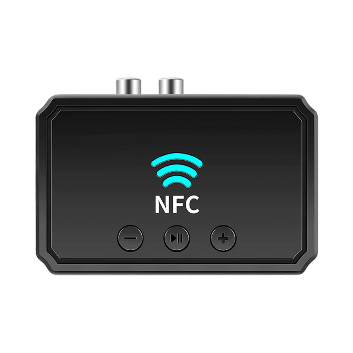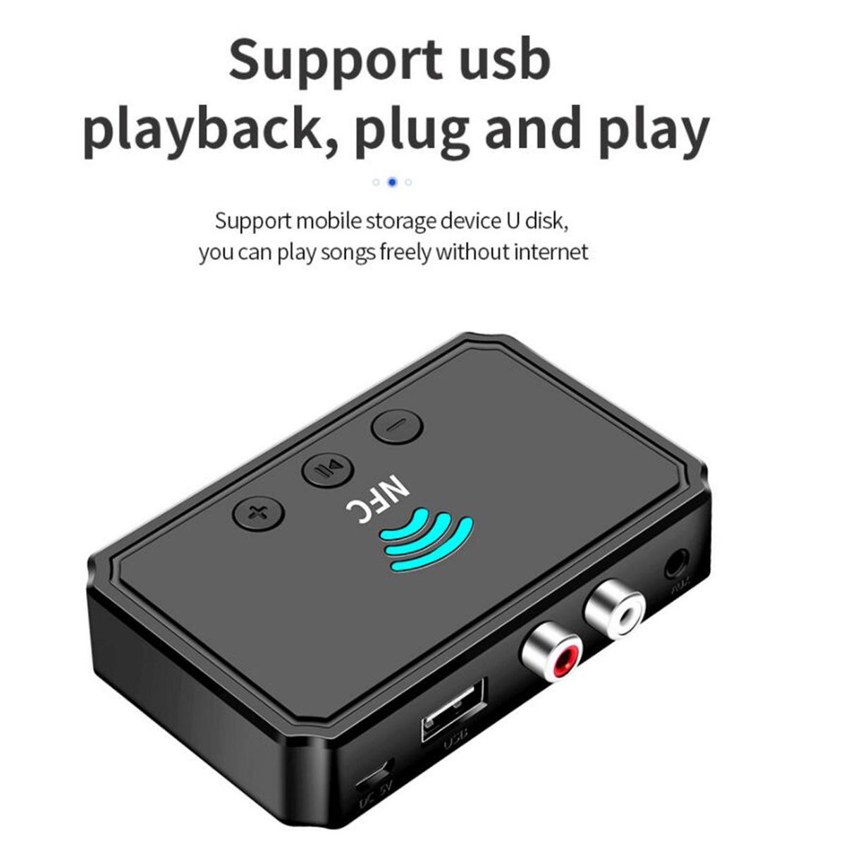 NFC Function: NFC tap to connect, Support NFC mobile device touch connection, no need to connect manually.support 3.5mm AUX, RCA: With 3.5mm and 2-RCA audio port, suitable with various audio devices.Bluetooth 5.0: stable connection, Bluetooth V5.0 , ensure that music is streamed to AUX or RCA input speakers, car or home audio system by stereo lossless Bluetooth audio signal.Compatibility: Fit for DVDs, HD hard disk players, TVs, CDs, game consoles, mobile phones, tablets, earphones, speakers, etc.HiFi Sound Effect: no delay, heavy bass, Bluetooth analysis transmission, stable 15M transmission.Plug and Play: Support USB playback and U disk, just plug in the AUX interface of the audio or power amplifier device.