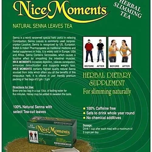 Cassia Angustifolia (Senna Leaves) No caffeine No chemical additives This special Formula drink is all natural tea soothingand relaxing especially delightful for those desiring to adjust weight