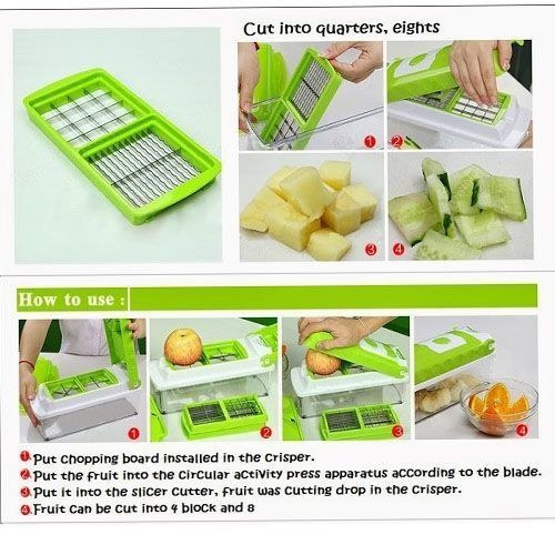 The Nicer Dicer vegetable and fruits chopper/slicer takes the cutting convenience of your vegetable and fruits to a whole new level. Boasting a huge bowl capacity, you can slice, dice, cut, julienne, cube, wedge, quarter, grate and so much more.