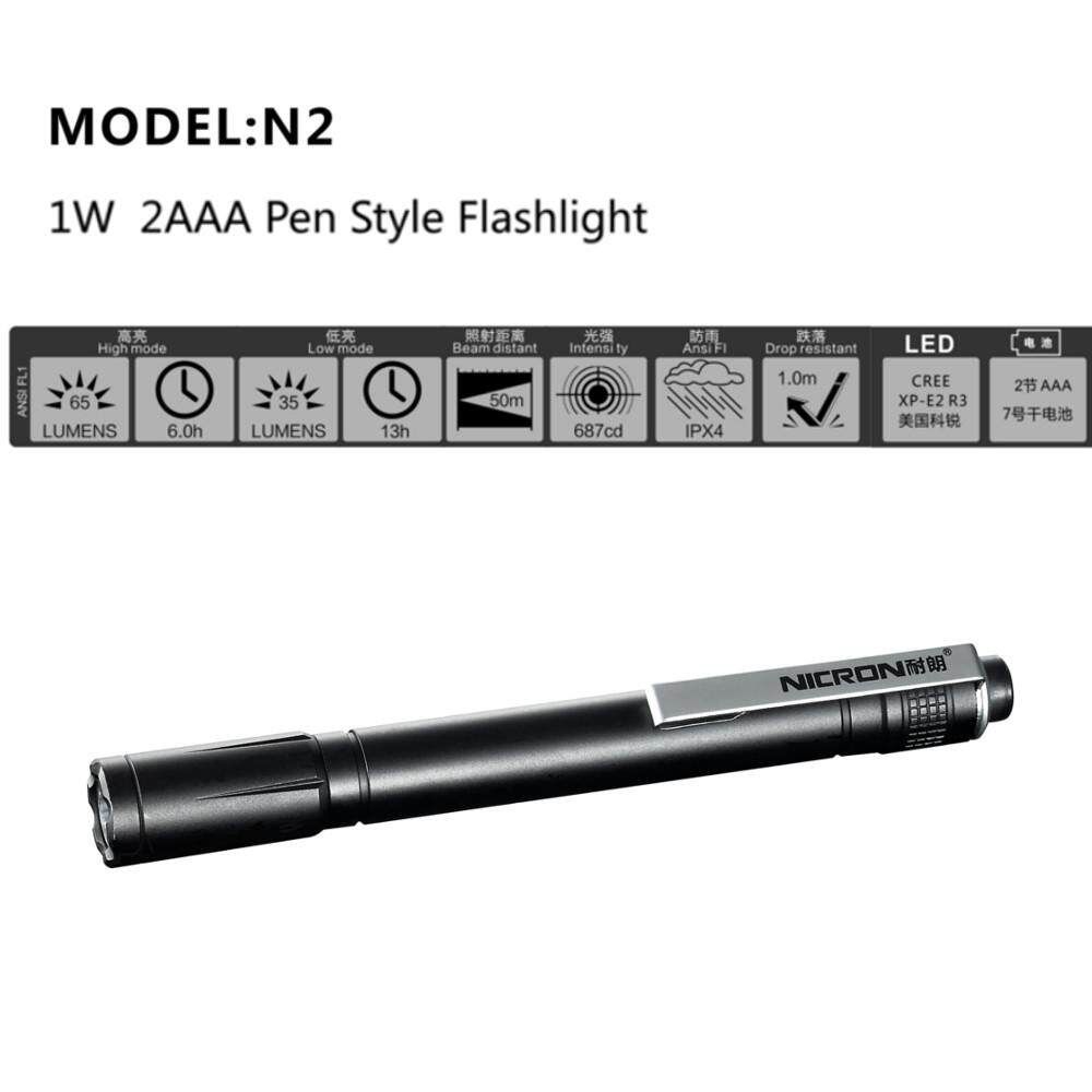 1 x Nicron N2 XP-E2 R3 Focusing Portable Pen Shape EDC LED Flashlight 1 x Pocket clip