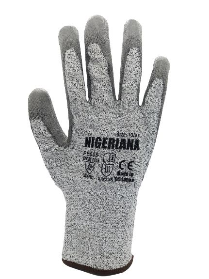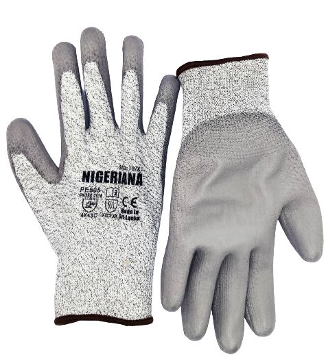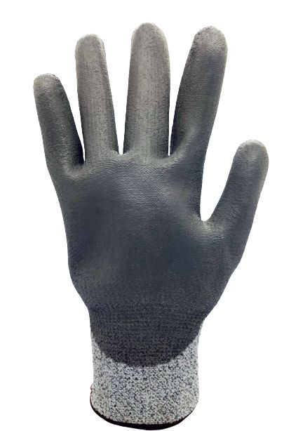 CUT RESISTANT GLOVES (PRO) are polyurethane coated gloves on light grey knitted shell used to handling of sharp parts in dry or greasy environment.