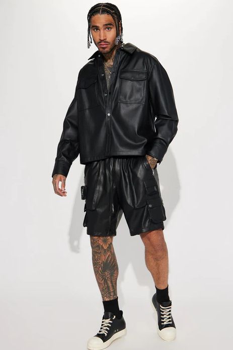 Men's black leather shacket, Faux leather shacket for men, Night out shacket for men, Cargo pocket shacket, Short length shacket, Black shacket for men, Faux leather outerwear, Men's fashion jacket, Trendy shacket for men, Stylish black shacket, Versatile men's shacket, Nightlife-inspired shacket, Men's streetwear jacket, Contemporary shacket design, Urban style shacket, Cargo pocket detailing, Faux leather fashion piece, Black outerwear for men, Men's leather-inspired shacket, Fashion-forward shacket, Versatile cargo pocket shacket, Short length outerwear for men, Nighttime fashion piece, Faux leather jacket with cargo pockets, Black shacket with cargo pockets, Men's faux leather fashion jacket, Night out essential shacket, Stylish outerwear for men, Cargo pocket shacket in black, Contemporary men's jacket, Trendy faux leather shacket, Urban-inspired shacket for men, Short length fashion piece, Nightlife-approved shacket, Men's street style jacket, Versatile black shacket, Cargo pocket shacket with short sleeves, Faux leather outerwear for men, Black fashion jacket, Stylish shacket with cargo pockets, Men's trendy leather shacket, Night out fashion essential, Cargo pocket detailing in black shacket, Faux leather jacket with short sleeves, Contemporary men's shacket, Urban-inspired fashion piece, Short length shacket for men, Nighttime fashion statement, Cargo pocket shacket with urban style, Stylish black shacket with short length