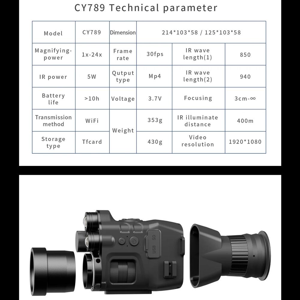 It allows for target observation in complete darkness up to a range of 200M and can be conveniently connected to a mobile phone via WIFI.