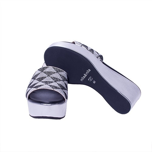This Slippers is made from leather material and its accessorise generously with tiny shinny glitter