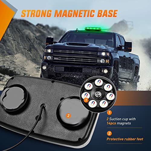 - Easy Installation: This strobe lights is plug and play and omes with 2 magneti ups with a total of 14 magnets. Just attah the magneti base on any metal exterior of ars and plug the igar .