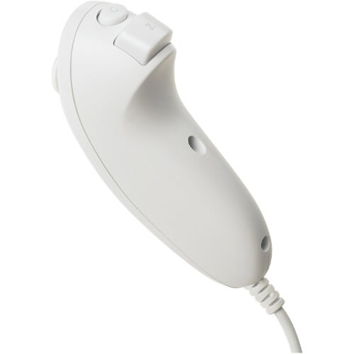 The Wii Remote, also known as the Wiimote, is the primary for 's . An essential capability of the Wii Remote is its capability, which allows the user to interact with and manipulate items on screen via and , using and technology. It is expandable by adding attachments. The attachment bundled with the Wii console is the Nunchuk, which complements the Wii Remote by providing functions similar to those in controllers. The Wii Remote assumes a one-handed -based design instead of the traditional controllers of previous gaming consoles. This was done to make motion sensitivity more intuitive, as a remote design is fitted perfectly for pointing, and in part to help the console appeal to a broader audience that includes non-gamers. The body of the Wii Remote is 160 mm (6.3 in) long, 36.2 mm (1.43 in) wide, and 30.8 mm (1.21 in) thick. The Wii Remote model number is RVL-003.