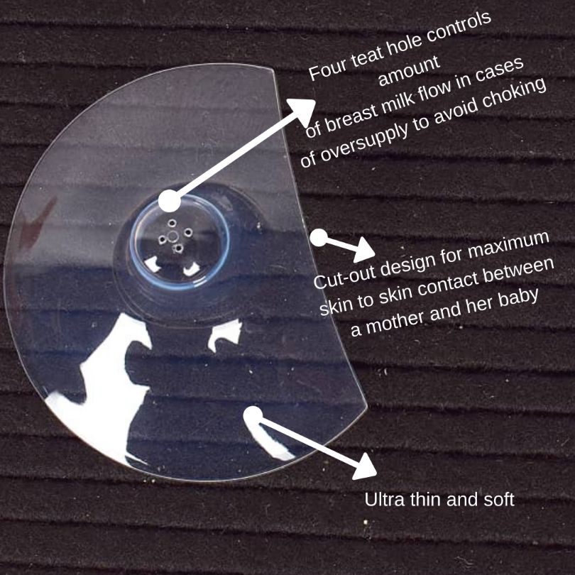 Cut-out design enables maximum skin to skin contact between mother and baby to avoid nipple confusion.