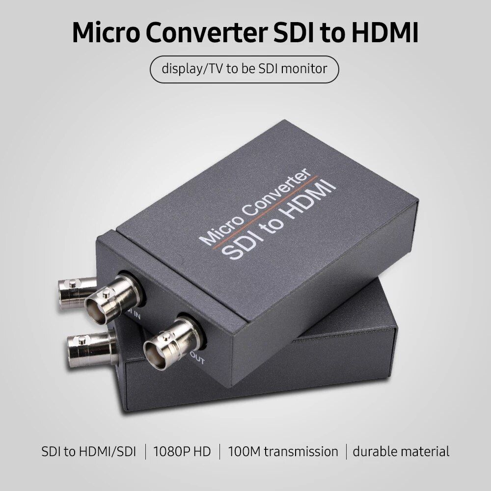 Features: SDI to HDMI Converter The SDI to HDMI converter allows HD-SDI and 3G-SDI signals to be shown on HDMI displays while ensuring high bit rates of 2.970 Gbit/s to give you fast signal transmiion without any lo. Note:This is not a bi-directional converter. DO NOT use for HDMI to SDI conversion. Display/TV to be SDI Monitor The HDMI display or TV can be used as SDI monitor,synchronization of video and audio playing. SDI Converter,2 Routes Output Connect to the HD monitor,SDI and HDMI interface display devices are displayed simultaneously. HD 1080P Convert High definition 1080P,capture the details clearly. Long distance Signal Support connect with other units to extend your signal over long distances. Specification: Model: NK-M008 Color: Grey Input Port: 1 x BNC (HD-SDI/3G-SDI) Output Port:1 x HDMI 1*SDI SDI Transmiion Rates: 2.970 Gbit/s In/Output Resolution: 720p\1080i\1080p Operating Temperature: 0°C ~ 40°C / 32°F ~ 104°F Storage Temperature: -20°C ~ 60°C / -4°F ~ 140°F elative Humidity: 20 ~ 90% RH (Non-condensing) Power Consumption (Max): 5W Operation at 2.970Gbit/s, 1.485Gbit/s Supports SMPTE 425M, SMPTE 424M, SMPTE 292M, SMPTE 259M-C Item Size: 9.7*5.5*2.3cm/3.8*2.2*0.9in Item Weight: 127g/4.5oz Package Size: 11*9*6cm/4.3*3.5*2.4in Package Weight: 193g/6.8oz
