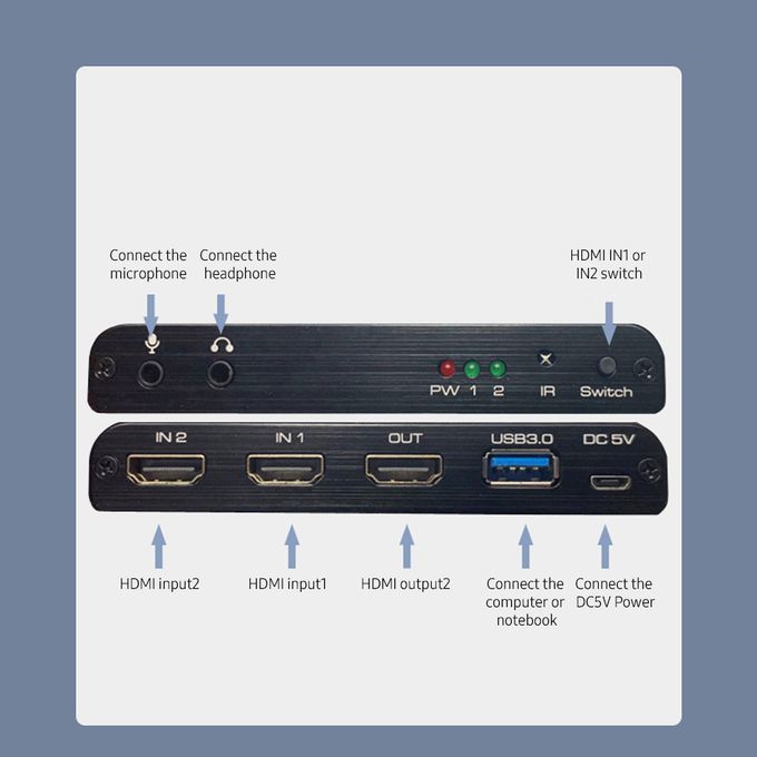 NK-X6 HDMI to USB3.0 Video Capture Card 4K 1080P HDMI 2-in-1 Switcher&Audio Compatible with PS4/XBOX/Recording/Live Streaming