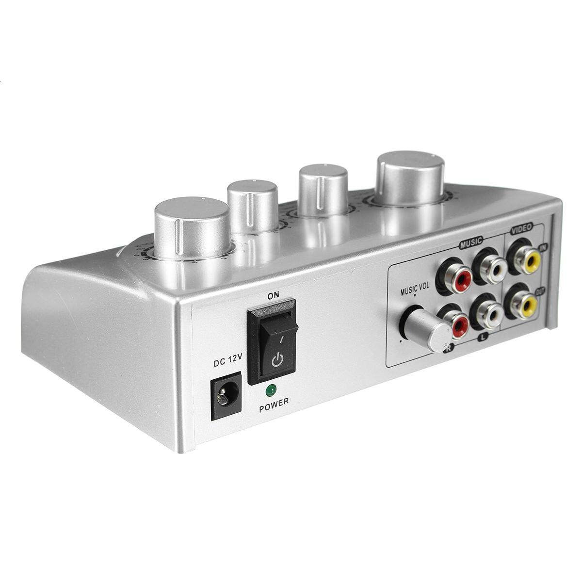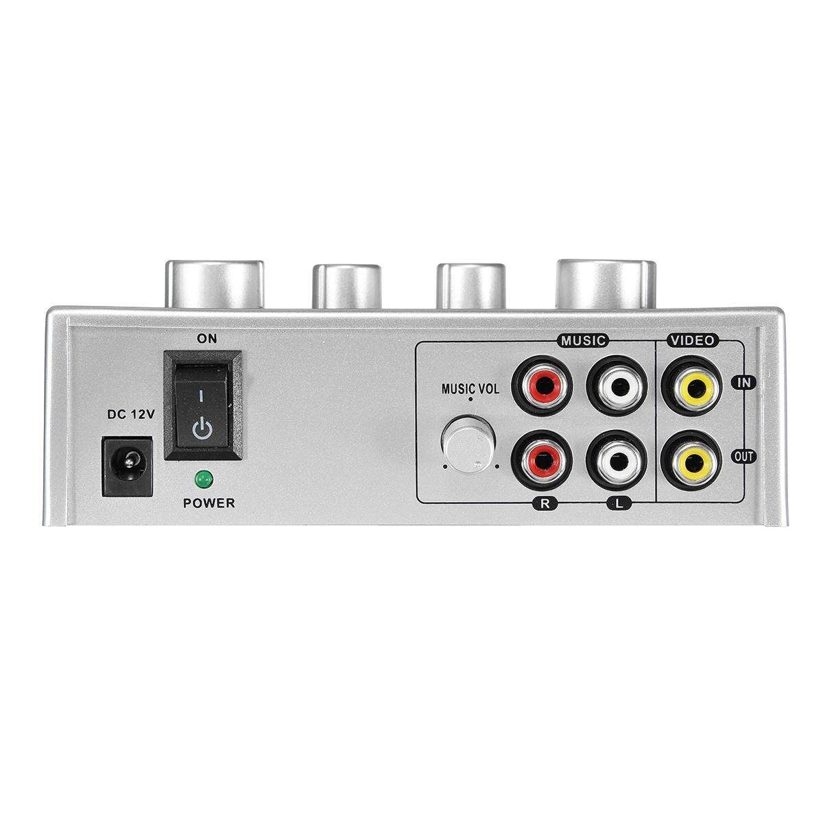 1.2 microphone inputs,video input and sound output for video signal,volume can be adjusted individually.