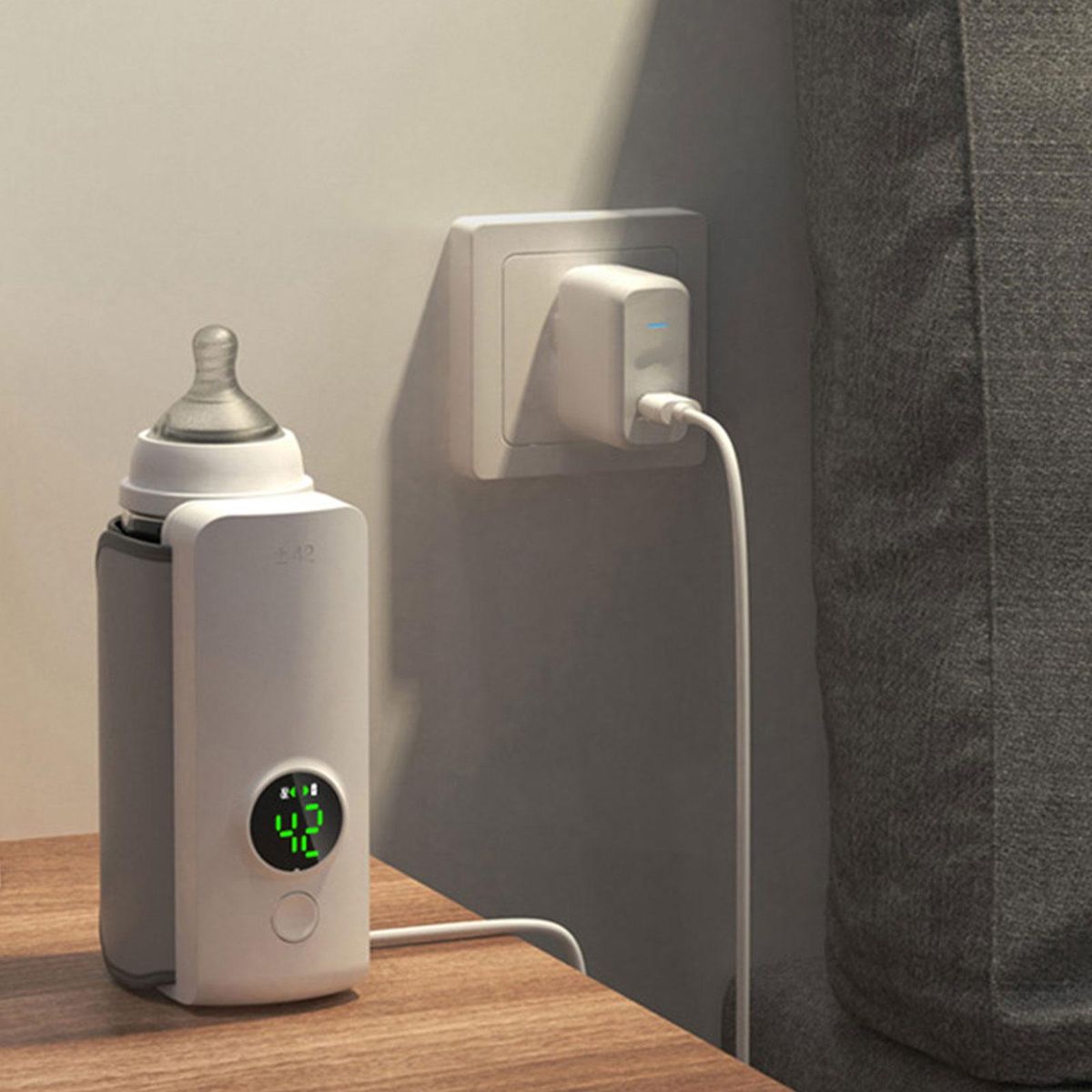 Rechargeable function convenience to useWith digital display function, real time display of temperature.6 Levels temperature adjustment, meet more needs of feeding.Bottle warmer perfect for all kinds of bottles whatever is wide mouth, angled , you could heat milk and food at the same time.Small easy to carry, making life convenient, and we don't need to worry about babies drinking milk.