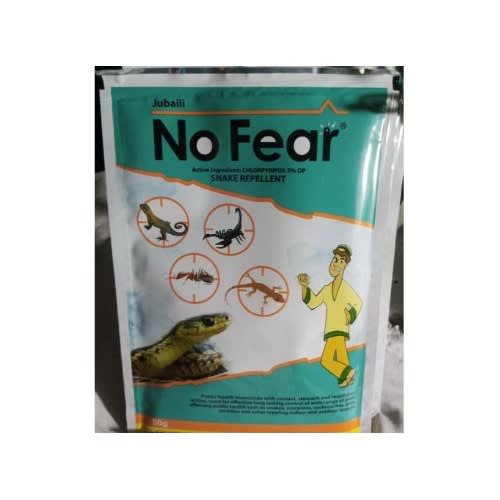 NO FEAR SNAKE REPELLENT is an insecticide with contact, stomach and respiratory action.It is used for effective long lasting control of wide range of pests affecting public health such as snakes, scorpions, cockroaches, ants, termites and other crawling indoor and outdoor insects. It has a special formulation to control wide range of pests affecting public health. It has a long residual effect if used as recommended. Its residual activity spans up to 45 days, even up to several months to years.PRINCIPAL USENo Fear is widely used in homes and premises as a residential insecticides to control wide range of pests affecting public health such as snakes, scorpions, cockroaches, ants, termites and other crawling insects. It has remarkable effect against snakes and other reptiles such as lizards, wall gecko etc.