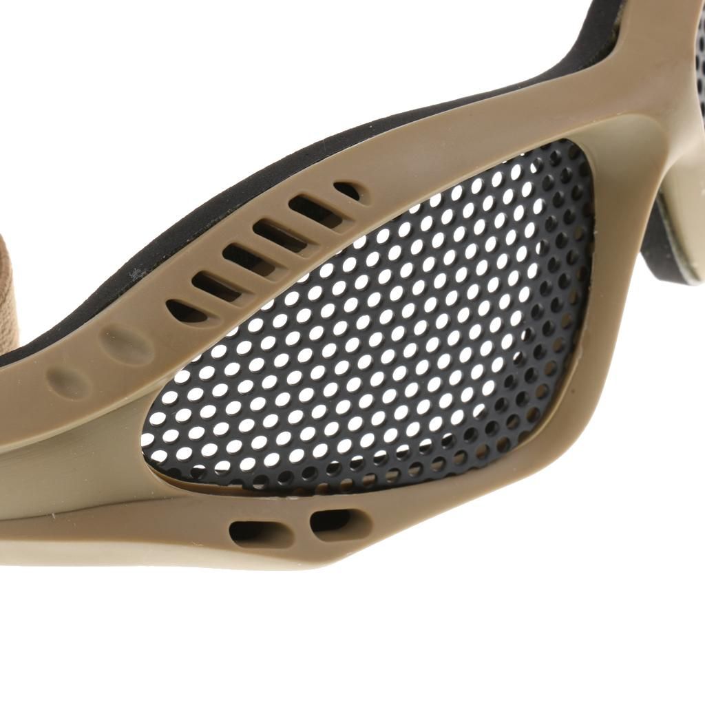 Excellent Quality, Mesh Safety .These are made from a light weight plastic and feature an adjustable elasticated head strap making for comfortable fitting and a foam lining on the inside of the for comfortable wearingHigh quality polyester and metal material, resistance to strong impact, safety and reliability.The glasses are partially metallic mesh, protect the user's eyesAdjustable strap for best comfort fitSize(L×W×H): 16×5.5×4 cm/ 6.3×2.16×1.57 inches