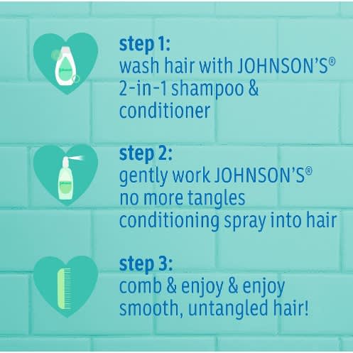 As your child grows, their hair needs change. Our haircare range is specially designed to be gentle versus regular adult products while offering advanced benefits. Win the tangles tug of war with No More Tangles & trade; kids conditioner spray. Specially designed to help keep toddlers' and kids' hair manageable, our detangling conditioner spray is formulated to unlock knots and tangles. For the best results, include as part of our 3-step routine* to unlock 75% more knots and tangles & dagger;.