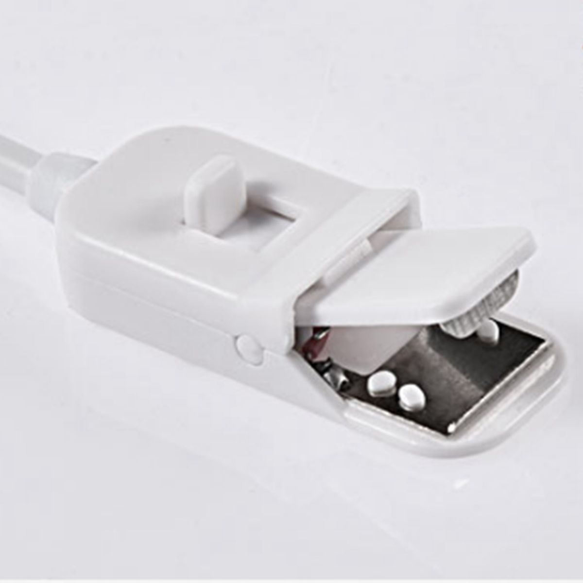 Color: WhiteMaterial: ABSPower Supply: 2 x 3V CR2025 Button BatteryWire Length: 92cmItem Size: 5.0 x 4.0 x 1.5cm