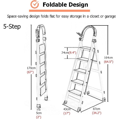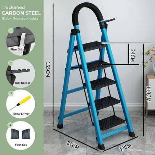 Buy Non-slip Ladder - Folding Steel Multipurpose 5 Steps Ladders-blue in Nigeria