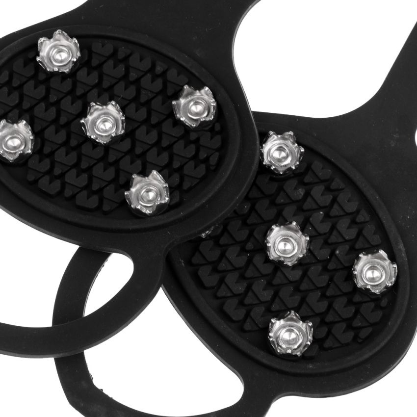 Easy on/off in seconds, easy to useHelps reduce the risk of falls and injuriesEasy to pack up, just takes little placeIdeal for outdoor activities like walking, climbing, hiking, ice , etcWith five durable alloy crampons, good protection for using on the ground of snow and ice