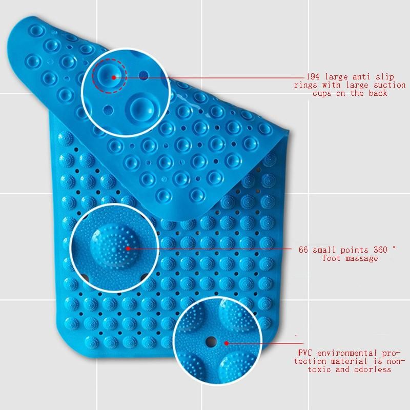 Detailed Information About The Product:EXCELLENT SLIP RESISTANCE - Our bath and shower mats have powerful suction cups that securely attach to the bottom of your bath tub or shower. Made from quality anti-slip rubber vinyl, this product is perfect for elders, children and those with mobility problems.