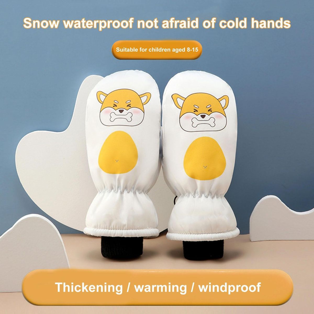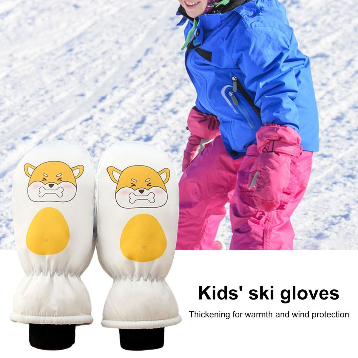 Our ski gloves, the perfect companion for your outdoor adventures! these gloves are designed with your comfort and convenience in mind. the wrist strap is freely adjustable, ensuring a snug fit that stays in place throughout your activities. featuring cute cartoon designs, these gloves not only keep you warm, but also add a touch of style to your outfit.
