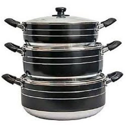 3 Piece stainless Set will be a perfect addition to your cooking utensils. It is made from quality aluminium so you are assured it will last you for a very long time. It comes in different sizes to take care of all your cooking amd serving needs. It has a nice design which is sure to make your kitchen decor look better. It has an aluminium cover that traps heat inside for efficient cooking. It comes in a set of 6 pots that will allow you cook different types of food at the same time.These Set will make cooking and serving enjoyable and convenient. Food cooked with this pot will be properly cooked for your enjoyment. You can easily wash and clean these pots after use. It is dishwasher safe so cleaning is even more convenient. No matter how frequent you cook with these pots, they will always remain rust free. It has a durable construction that will make it withstand long term use. you will have no reason to buy a replacement in a very long time. These pots can be used to cook in homes, restaurants and more.