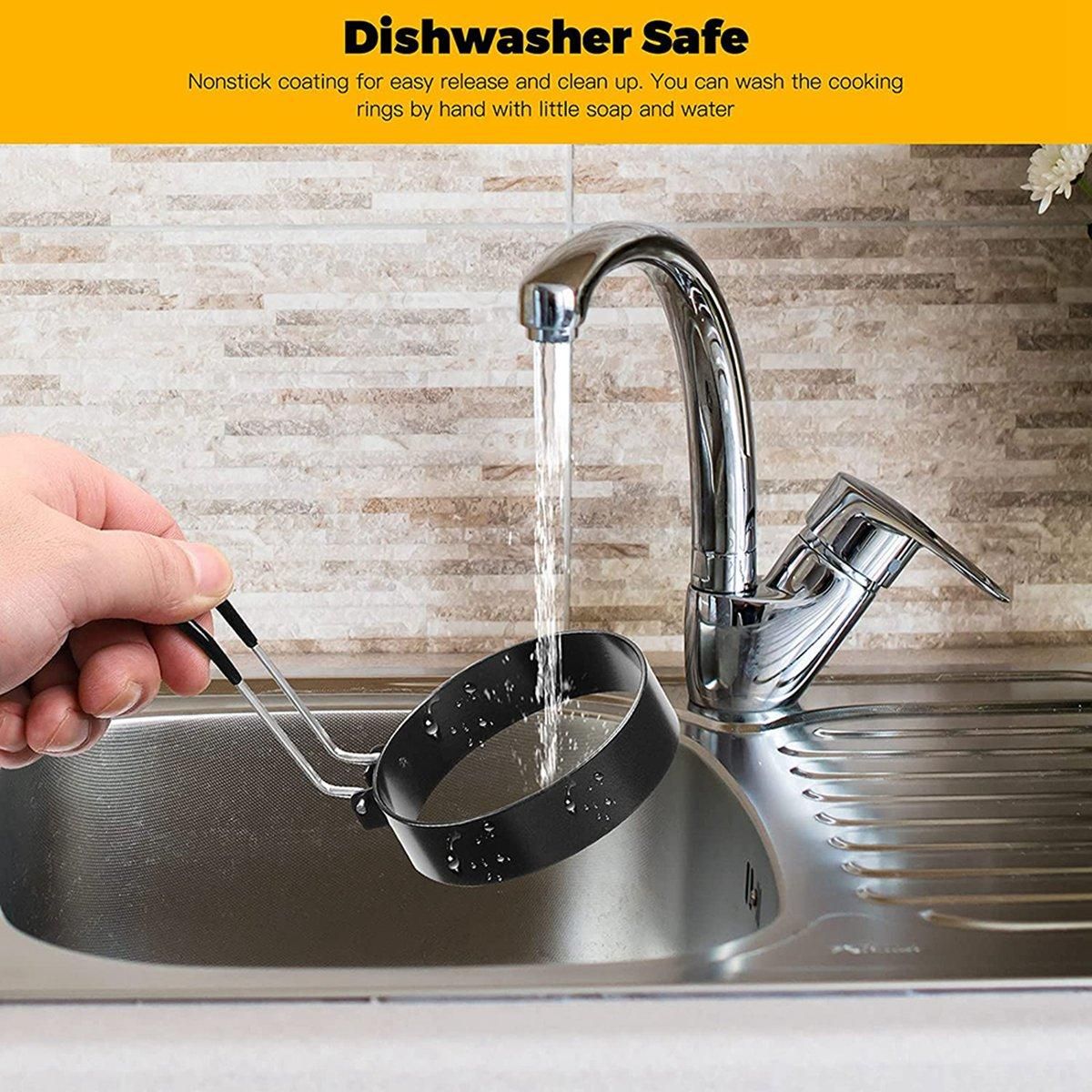 Non Stick Metal Material: hese round egg rings are made of Metal. It's premium BPA free coating keeps foods from sticking. Easy to clean, non-rusting. They can help you make a delicious and safety breakfast.
