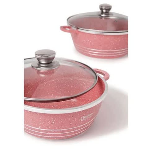 This Stainless Steel 6-Piece Cookware Set features a 9'' casserole pot with lid, 8'' casserole pot with lid, 7'' casserole pot with lid, 6'' casserole pot with lid, 6'' . This cookware set is suitable for all cooking surfaces. As it is made using stainless steel, this cookware set stays strong for years to come. The Stainless Steel 6-Piece Cookware Set has a thermal diffused base for fast heating. The handles are isolated from heat and offer a comfortable grip. The highly resistant glass lids with steam vents keep the moisture locked in and help cook flavorful meals.