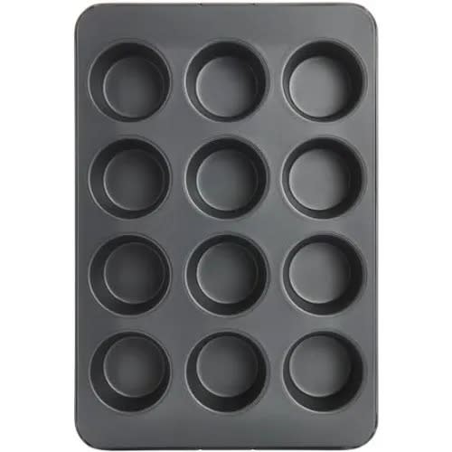 Make delicious baked goods at home with this set of nonstick carbon-steel muffin pans. The bakeware provides 12 cups per pan perfect for the whole family or a bake sale at school. In addition to endless varieties of muffins and cupcakes, the pan can also be used for a wide range of savory or sweet single-serving creations from hash-brown cups and poached eggs to mini cheesecakes or frozen peanut butter cups.