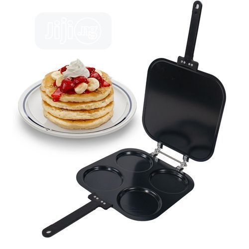 Non-stick pancake pan is needed in all homes, it is easy and fast to cook with, no added fat, spatula free, it is affordable, durable, very strong. It can cook 4 pancakes easily. As you cook your pancake, it's quite easy to flip the pan and cook the other side without too much stress and without a spatula. You make plenty pancakes for the family with ease and in no time as you have the space to make