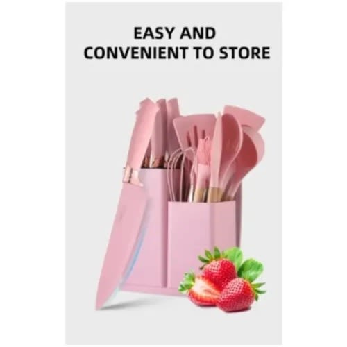 Buy Non-stick Silicone Kitchen Utensils With Holder - Set Of 19 - Pink in Nigeria