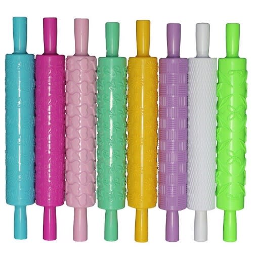 PRETTY PATTERNS- Our fantastic quality set includes 8 patterned rolling pins to suit all occassions! Each set will include a tuquoise pin in a butterfly pattern, a fushia pin in a hearts and roses pattern, a vibrant yellow pin with a daisy pattern, a white pin embossed with a mesh pattern, a lime green pin with a diamond and flower design, a pink pin with an even heart pattern and an emerald green pin with an elegant leaf design.